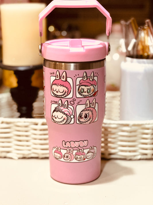 20 oz Insulated Tumbler – Pink Stainless Steel with Handle back to school tumblers, character design tumbler