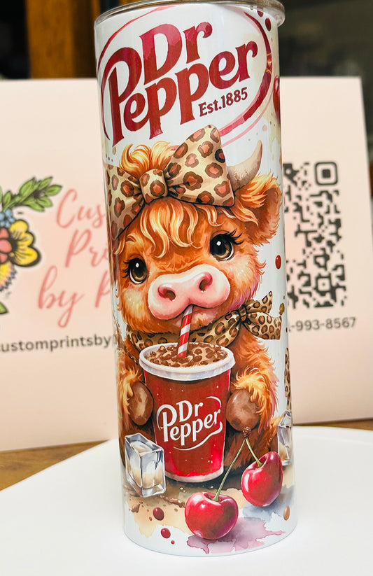 20oz Cartoon Tumbler – Add a Name | Cute Soda Theme Cup (Ready to Ship)20oz Skinny tumbler, cute highland cow soda tumbler, Iced coffe cup, Cute tumblers, Trendy cow cup