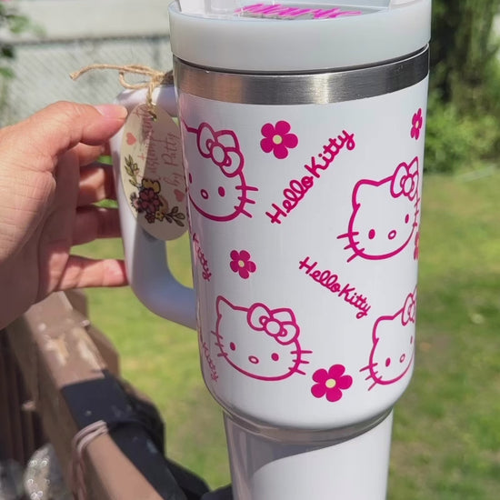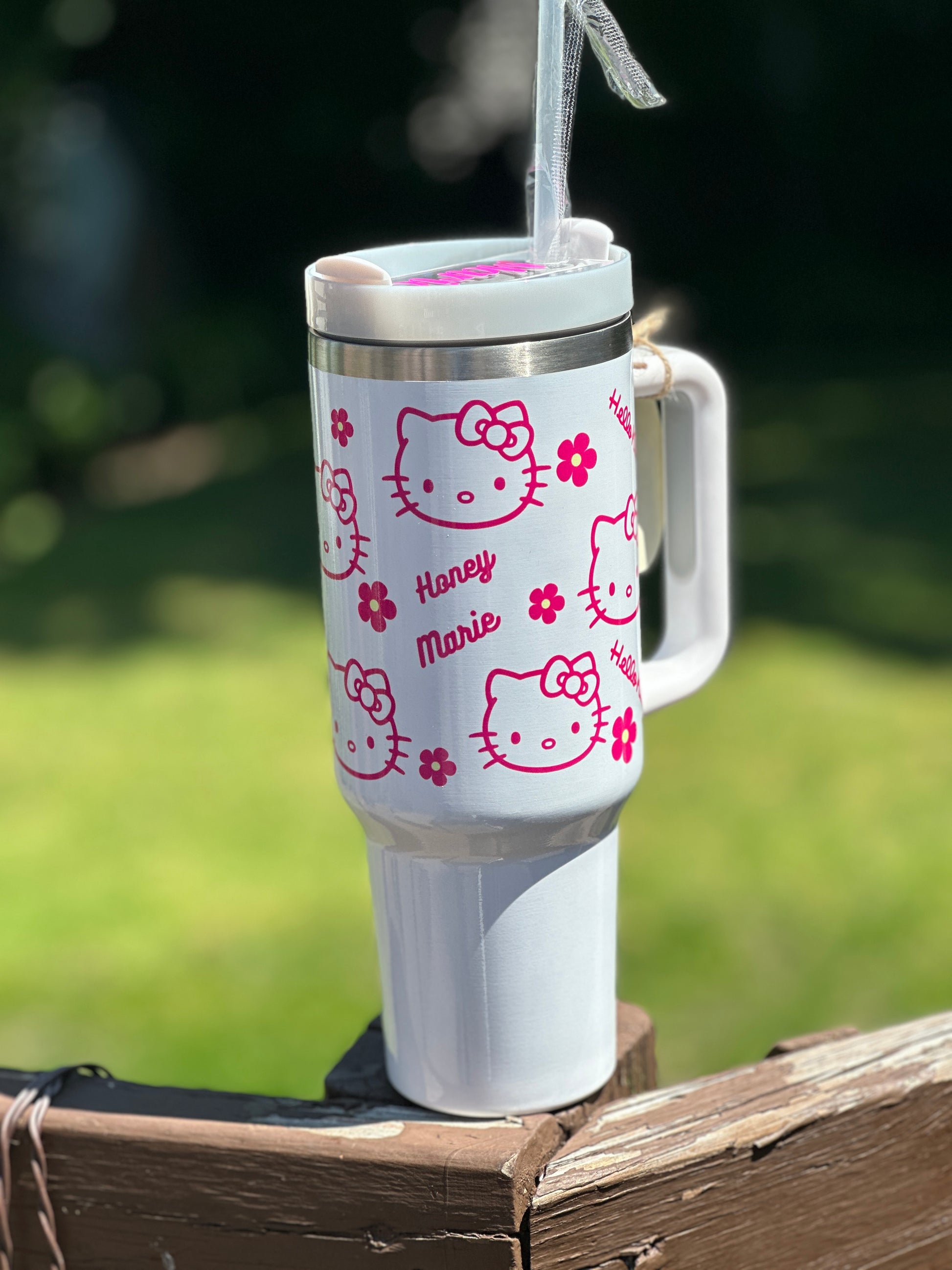 Stainless steel tumblers, Kitty tumblers, 40 oz tumblers, kitty tumblers with handles, alien tumblers, coquette bow tumblers, birthday gifts, back to school gifts, personalized tumblers.